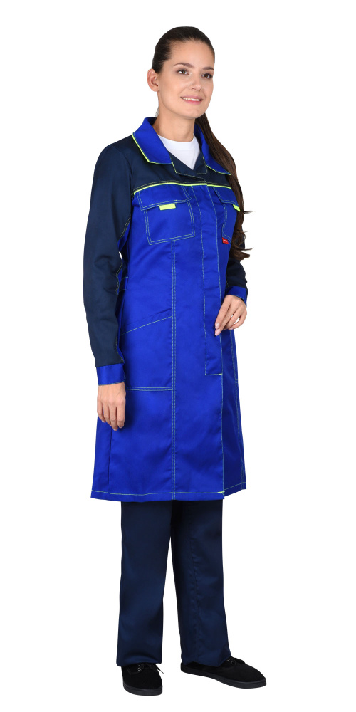 Халат "Ирина" женский васильковый с синим и лимонным кантом (ЧЗ) ( 88-92/170-176)