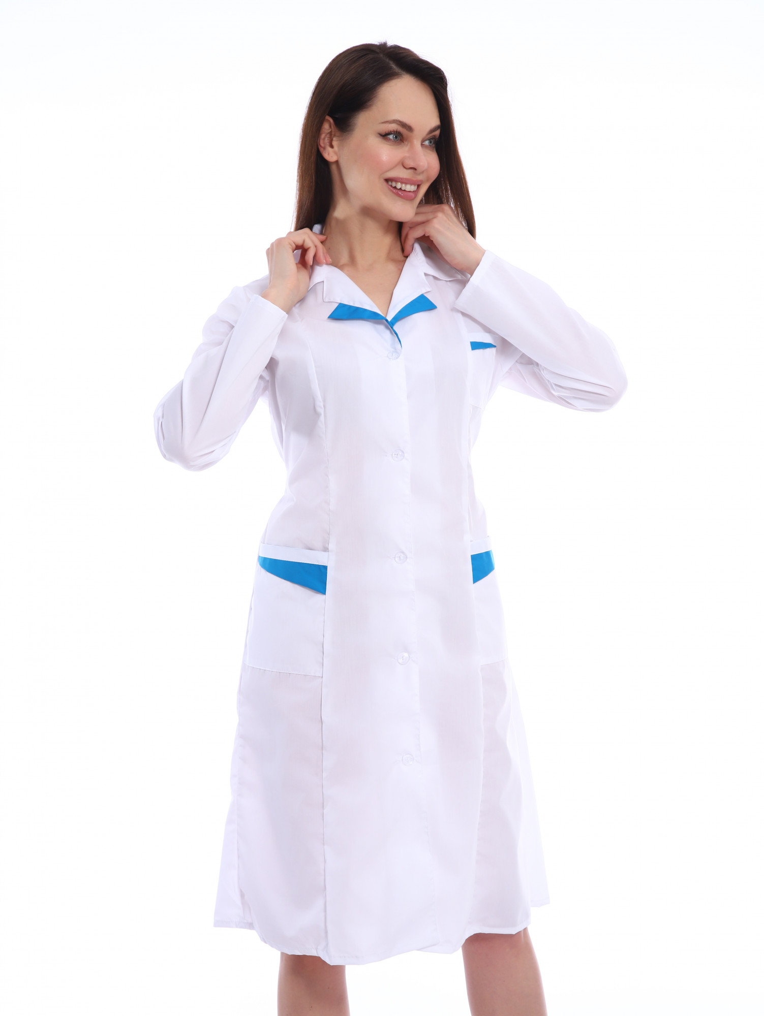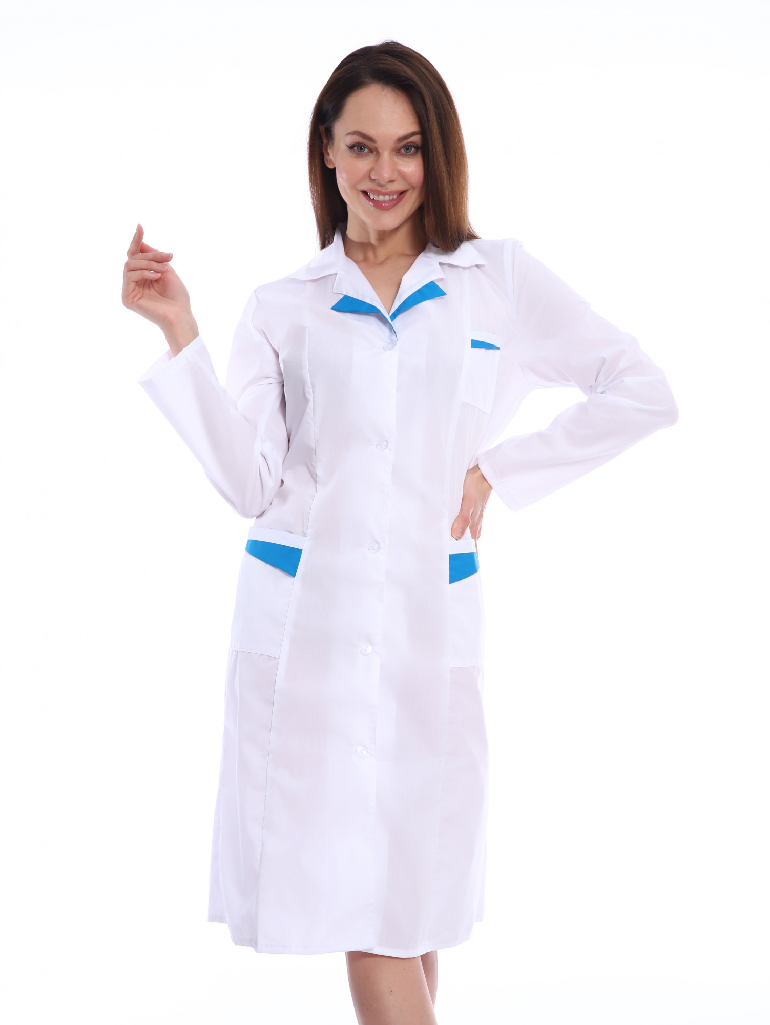 Халат медицинский ТИСИ ЛИЗА белый с голубым (ЧЗ) кронос ( 96-100/158-164)