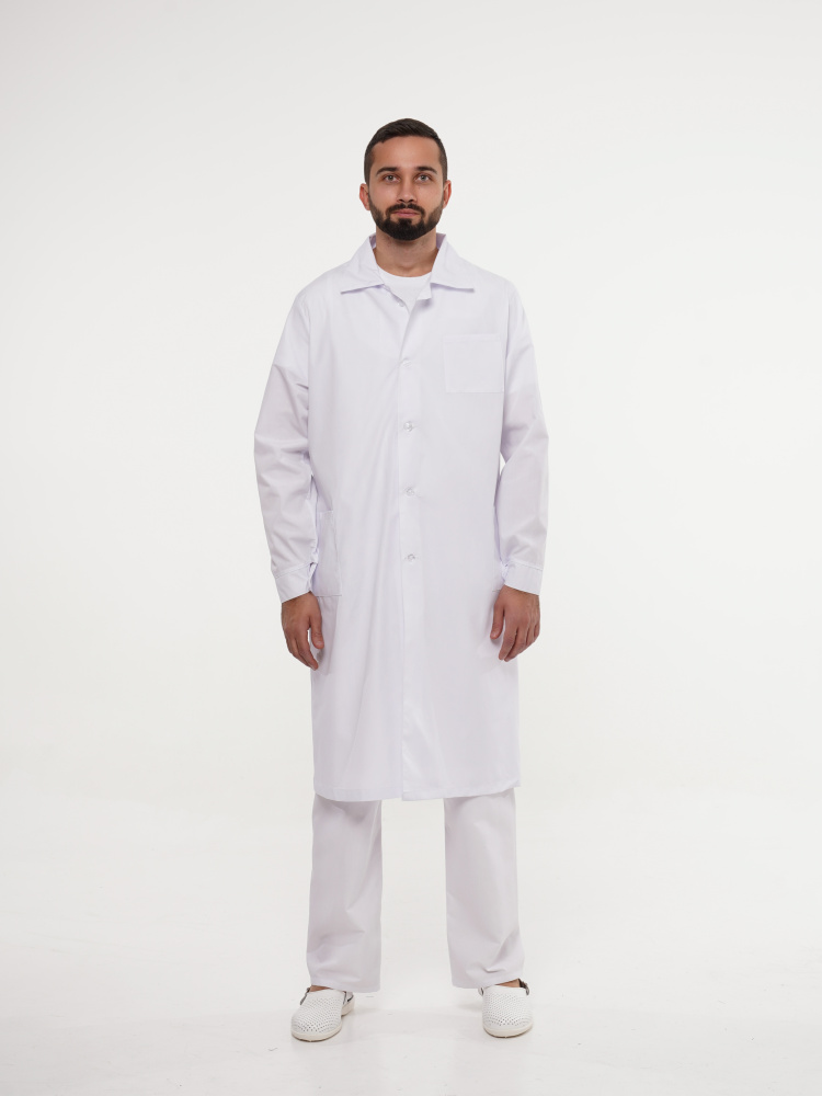 Халат рабочий мужской №202 отбеленный, ткань ТИСИ (ЧЗ) (112-116/182-188)