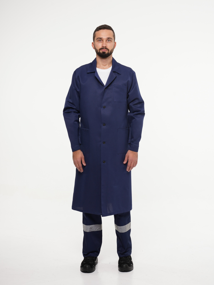 Халат рабочий мужской №204 тёмно-синий (ЧЗ) (112-116/182-188)