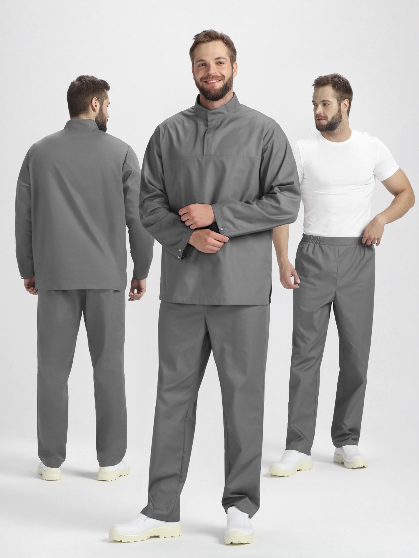 Костюм мужской ХАССП-Стандарт NEW (Хаспфуд-Стандарт) (тк.Смесовая,160), серый (ЧЗ) ( 96-100/170-176)