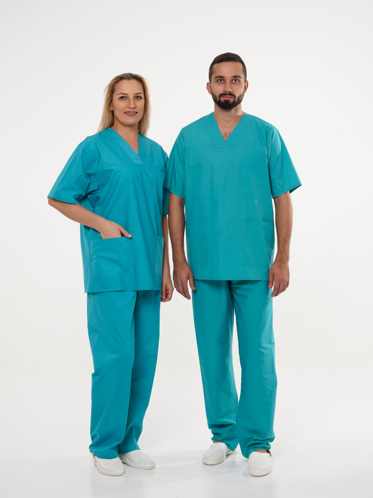 Костюм хирурга универсальный №104 блуза, брюки бирюза (ЧЗ) (112-116/158-164)