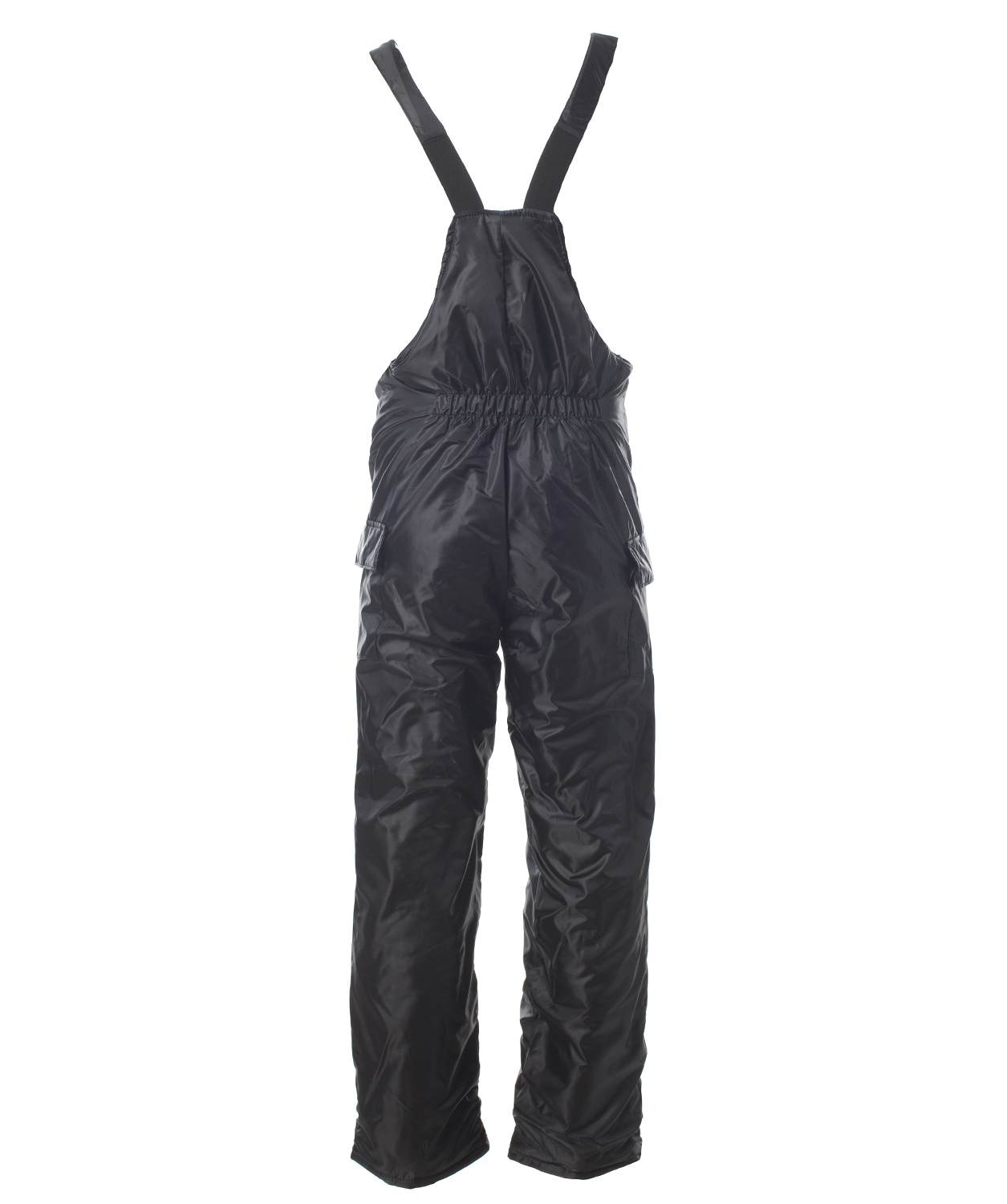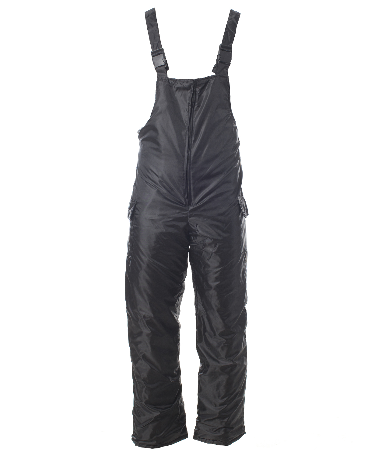 Полукомбинезон с накладными карманами и клапанами на липучках на боковых швах.