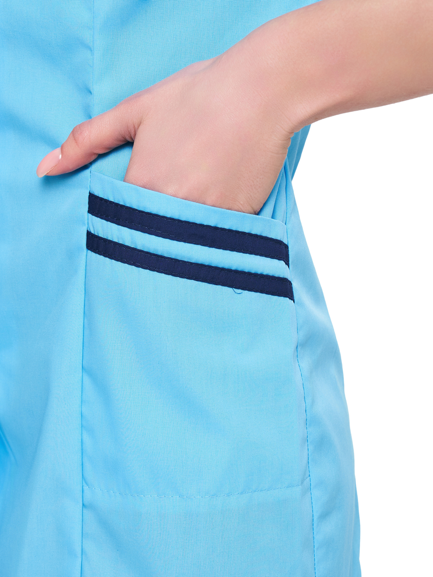Современный удобный женский костюм со свободной посадкой, рекомендован для сферы обслуживания, клининга, гостиничного бизнеса (HORECA) из высококачественной смесовой ткани убережет от загрязнений и послужит отличным помощником в решении задач любой сложности. Костюм для горничных и уборщиц прост в уходе, не мнется и быстро сохнет, а материал долгое время сохранит свой первоначальный яркий цвет. Костюм состоит из блузы светло-голубого цвета и брюк темно-синего цвета. Спецодежда для горничных является особенным видом профессиональной униформы. Она создана для сферы обслуживания, работники которой всегда должны выглядеть безупречно. Одежда для горничных строго регламентируется администрацией гостиницы или отеля, поэтому ее состоянию уделяется большое внимание. Костюм состоит из прочной смесовой ткани ТИСИ, отталкивающей различного рода загрязнения. Материал устойчив к пятнам и истиранию, тем самым уборщицы всегда будут выглядеть опрятно и привлекательно.