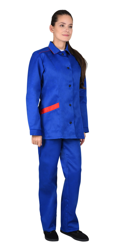 Костюм "ЗОЛУШКА" женский: куртка, брюки васильковый с красным кантом (ЧЗ) ( 88-92/158-164)