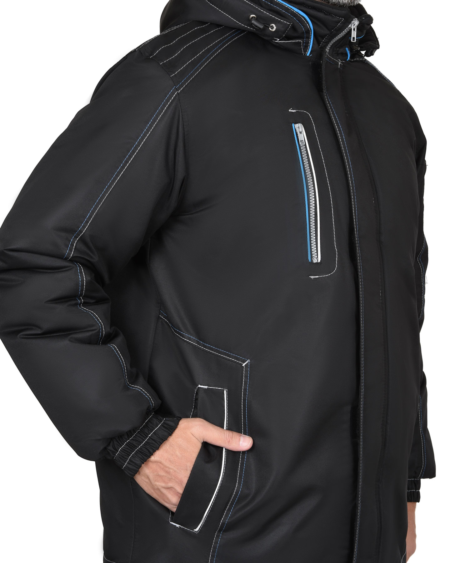 Куртка "АЛЕКС" : зимняя, мужская, цв. черный с голубой отд. (ЧЗ)