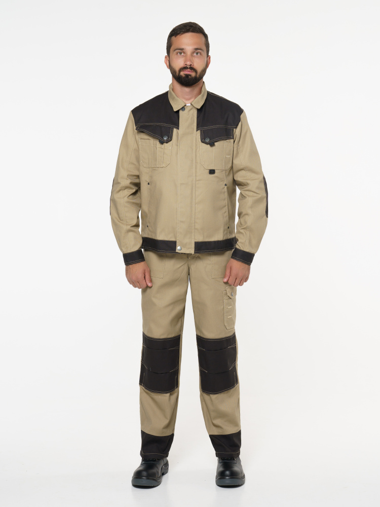Куртка "Вест-Ворк" короткая, бежевая с черным (ЧЗ) (120-124/182-188)