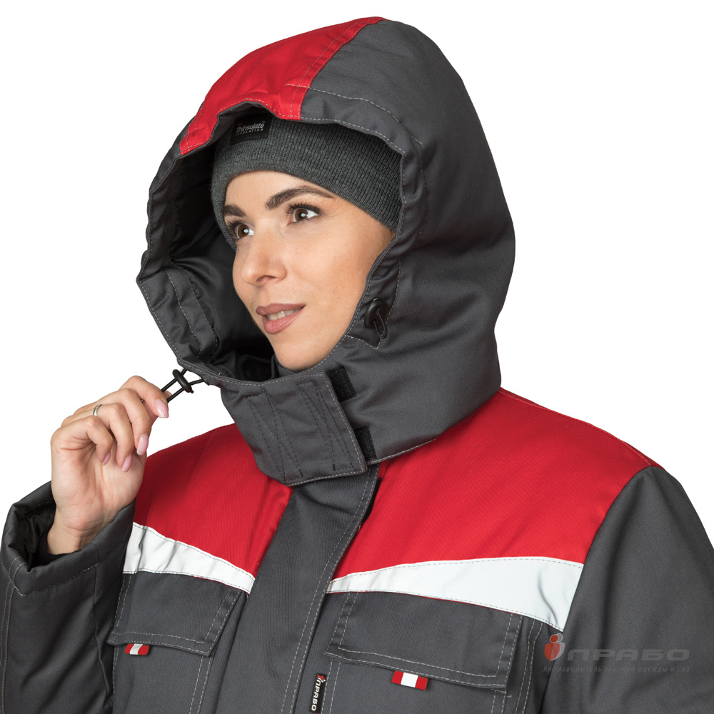 Куртка женская утеплённая "Профессионал" тёмно-серая/красная (ЧЗ) ПРАБО (112-116/170-176)