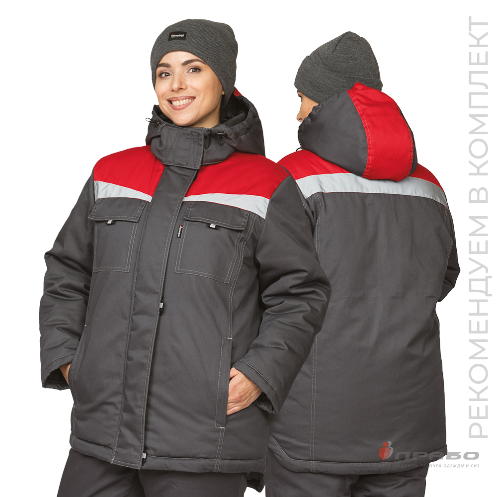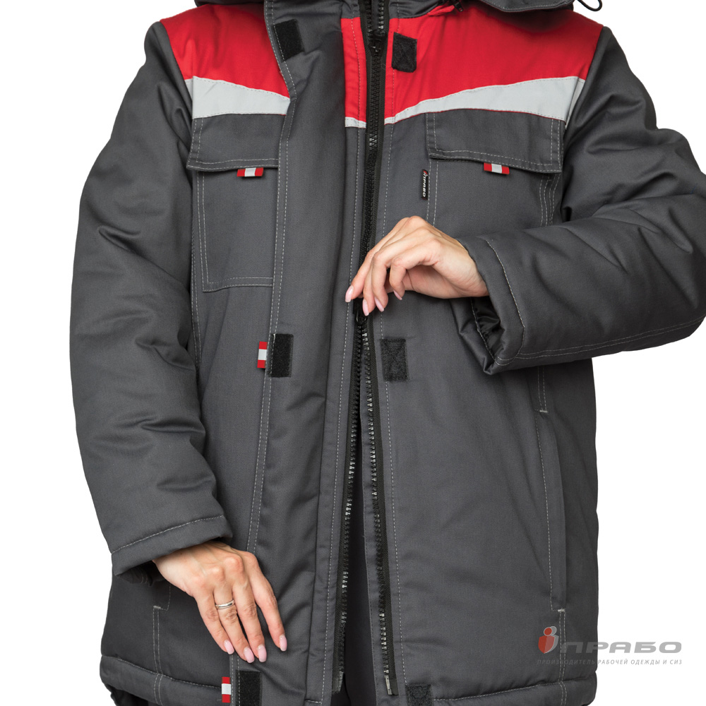 Куртка женская утеплённая "Профессионал" тёмно-серая/красная (ЧЗ) ПРАБО (104-108/158-164)