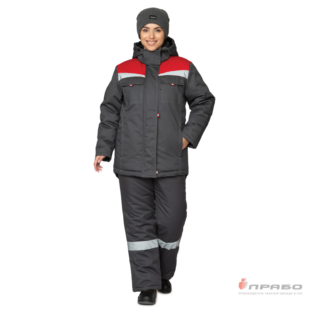 Куртка женская утеплённая "Профессионал" тёмно-серая/красная (ЧЗ) ПРАБО (104-108/170-176)