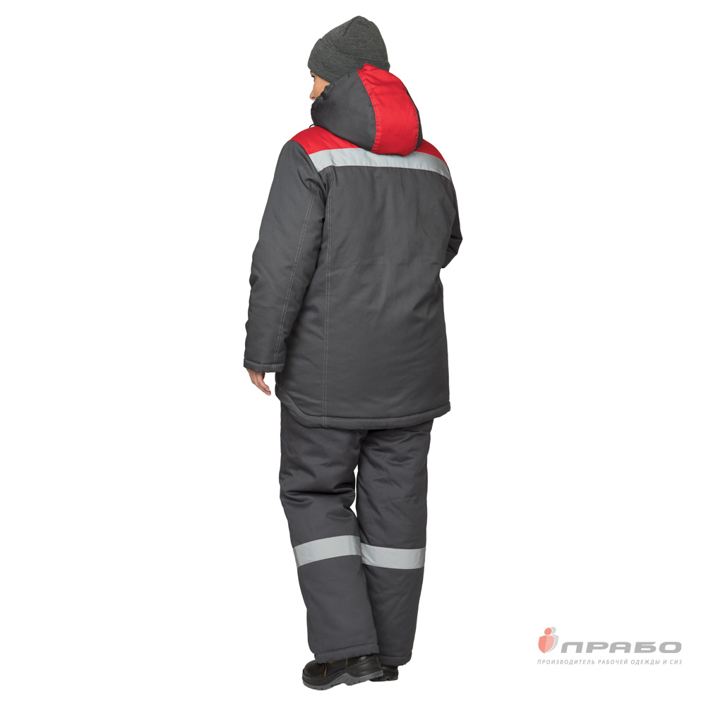 Куртка женская утеплённая "Профессионал" тёмно-серая/красная (ЧЗ) ПРАБО (120-124/170-176)