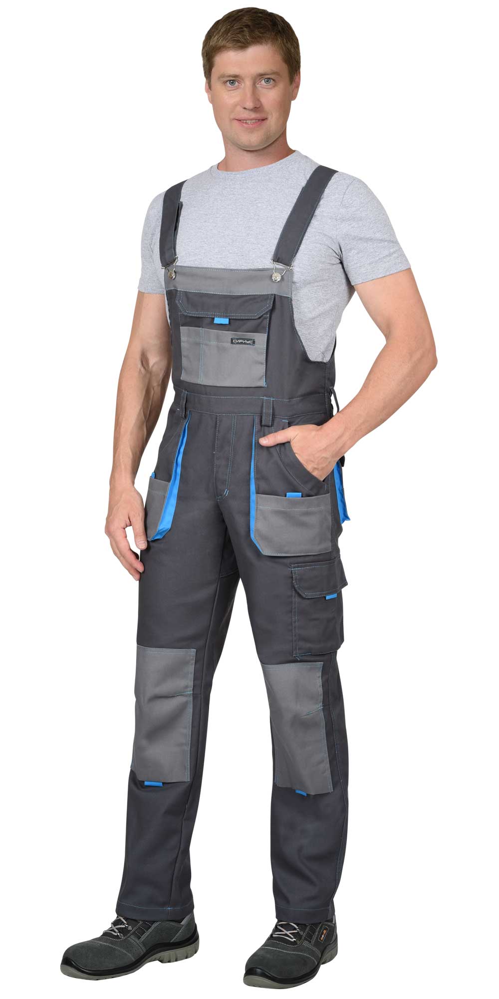 Полукомбинезон "Двин" т.серый со средне серым и голубой отделкой