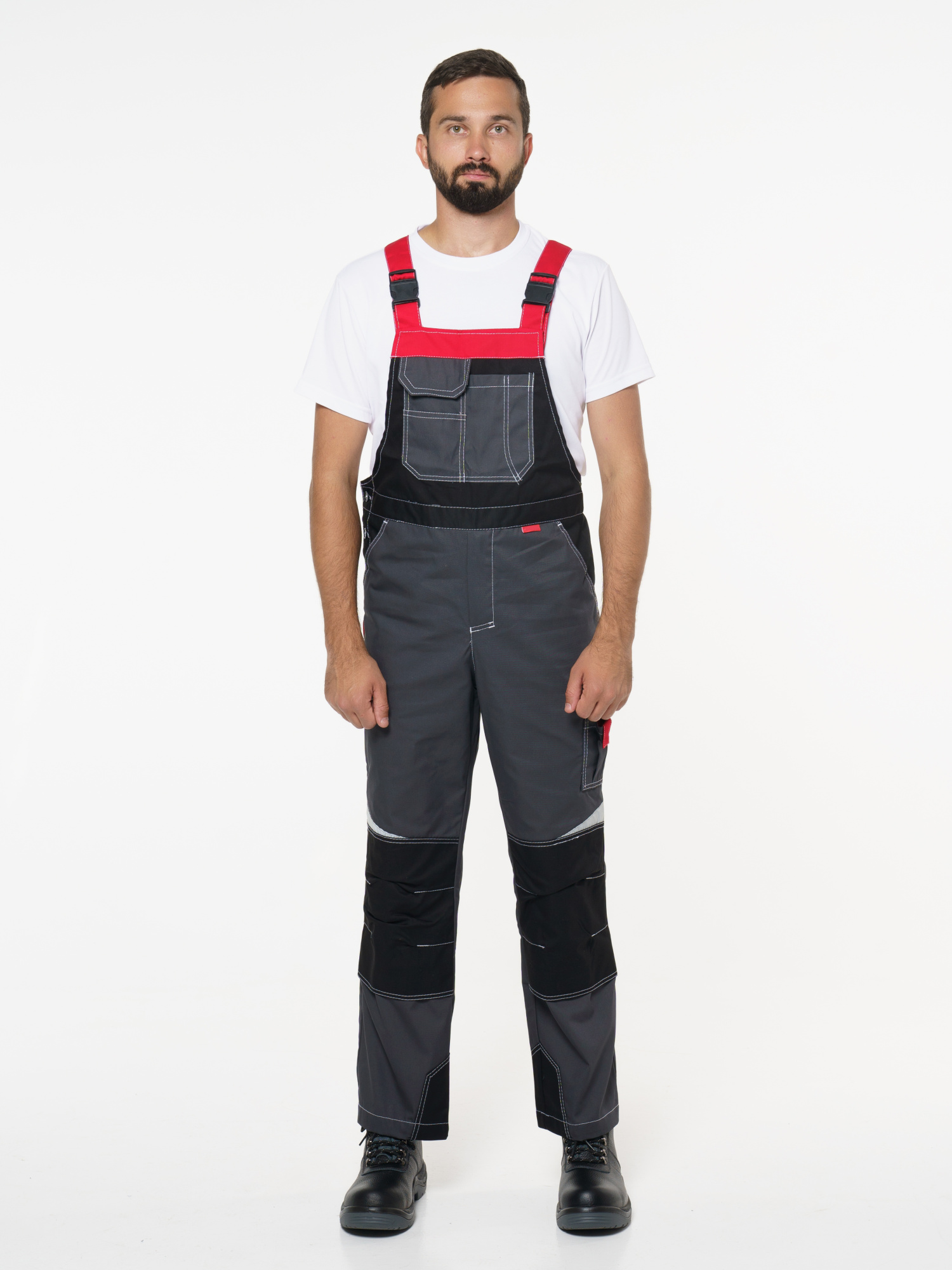 Полукомбинезон с застёжкой гульфика на молнию и застёжкой в боковом шве на пуговицы; с различными многофункциональными карманами; с объемными наколенниками. СОП-50 мм. ГОСТ 12.4.280-2014