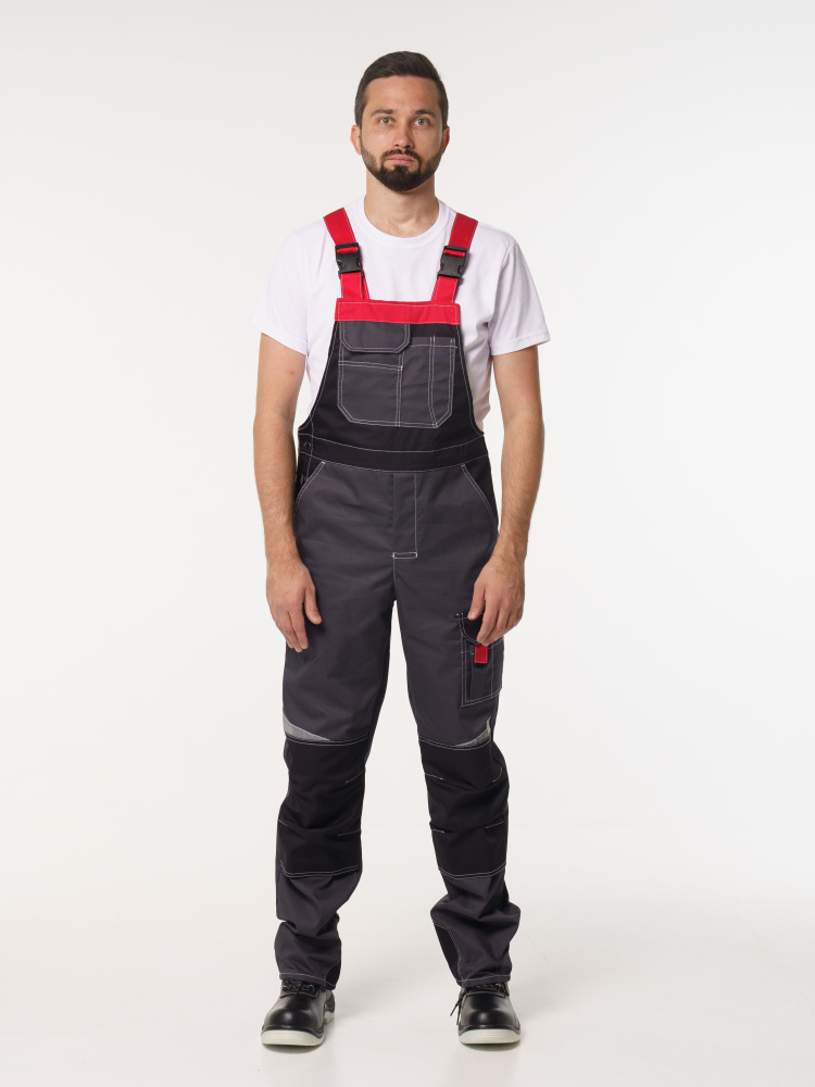 Полукомбинезон рабочий мужской №116 серый, черный, красный, СОП, ткань Rodos