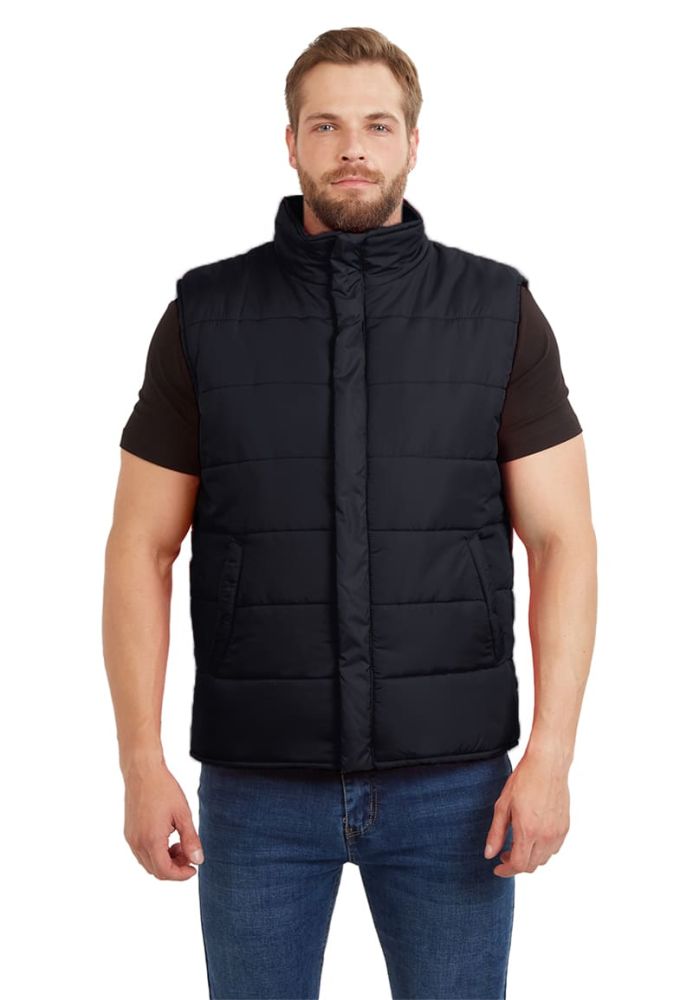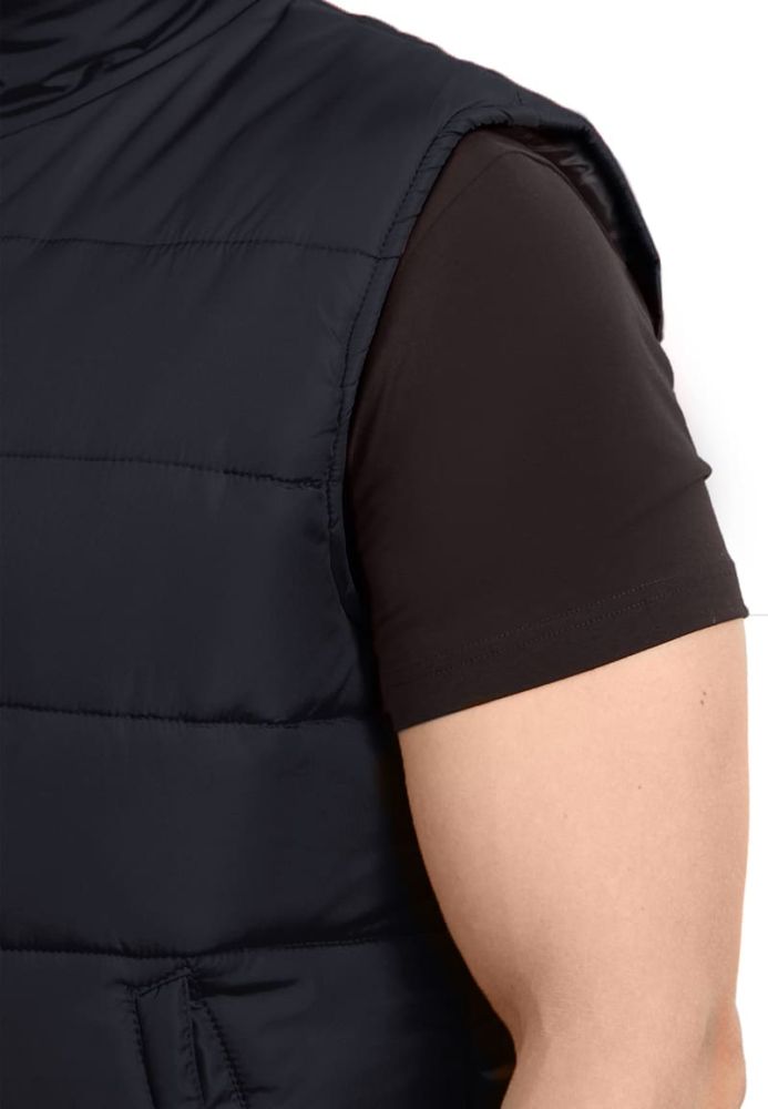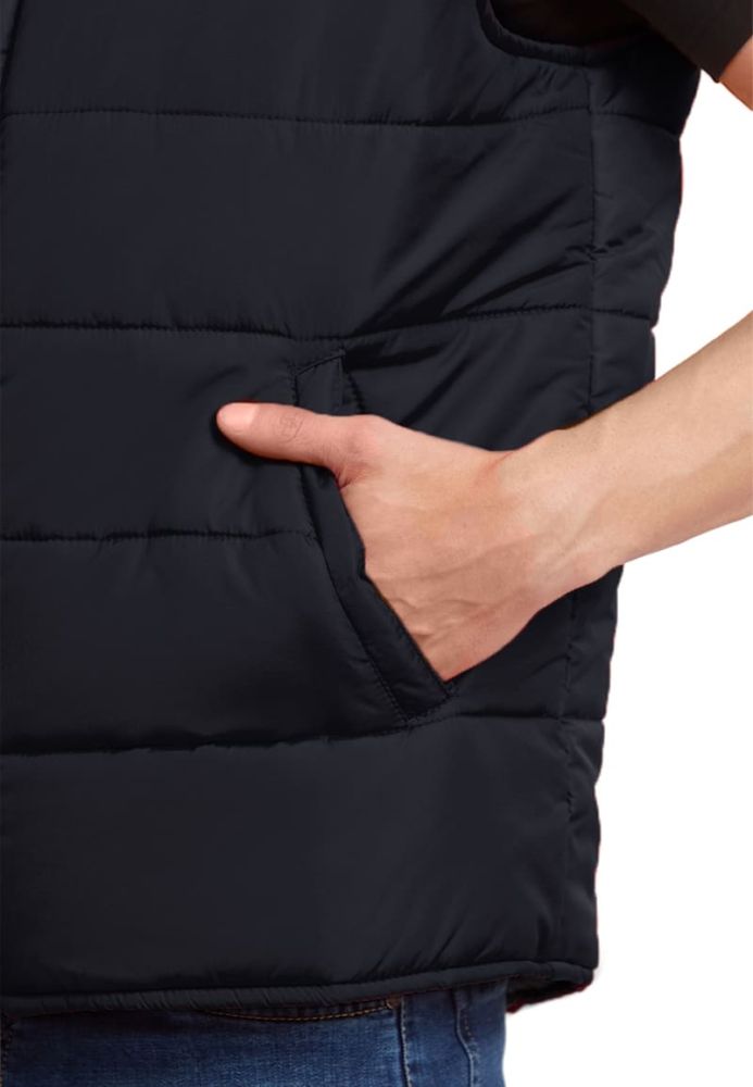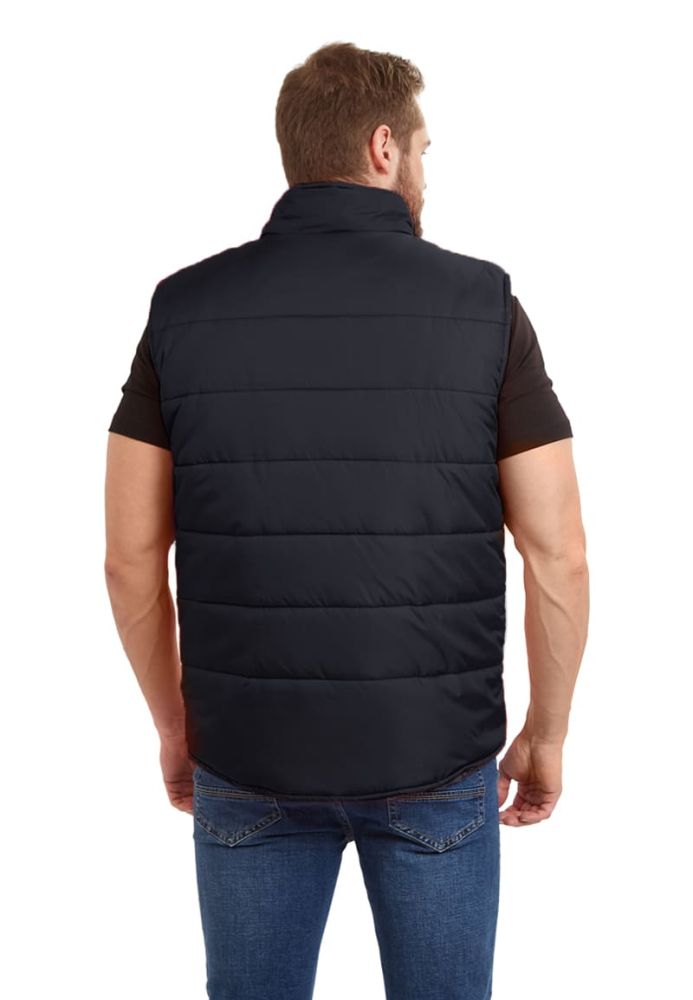 Жилет мужской, прямого силуэта, утепленный, простеган декоративными строчками с двумя слоями утеплителя:
